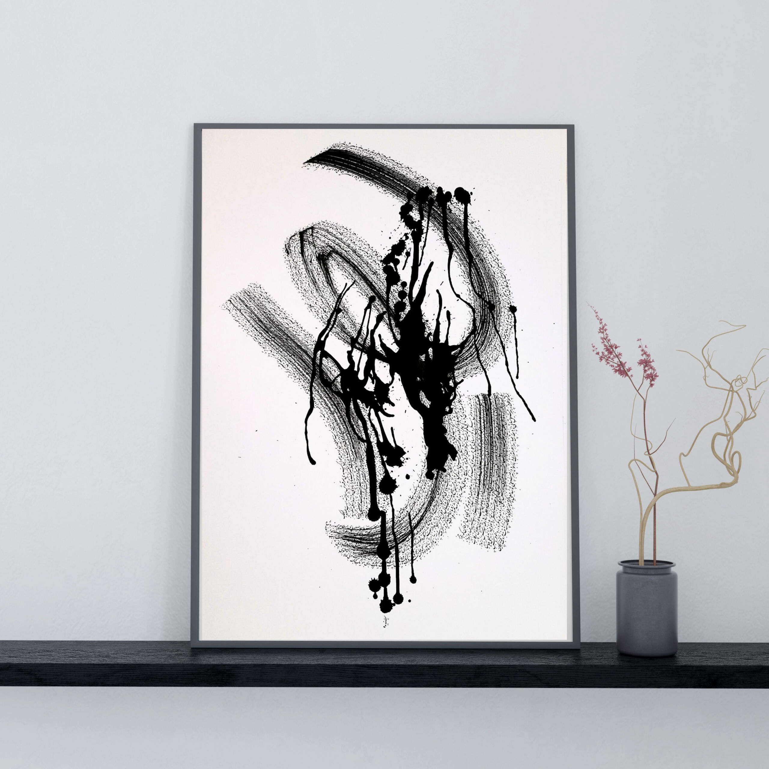 In this piece, the artist breaks away from structured forms to capture a raw, kinetic energy. The Outburst of Silence represents the moment when unspoken thoughts erupt into visual form. Through the use of bold splatters and sweeping, gestural strokes, the work explores the tension between control and spontaneity. The ink drips and explosive lines suggest a liberated movement, where the essence of calligraphy transcends literal meaning to become a pure expression of emotion and instinct